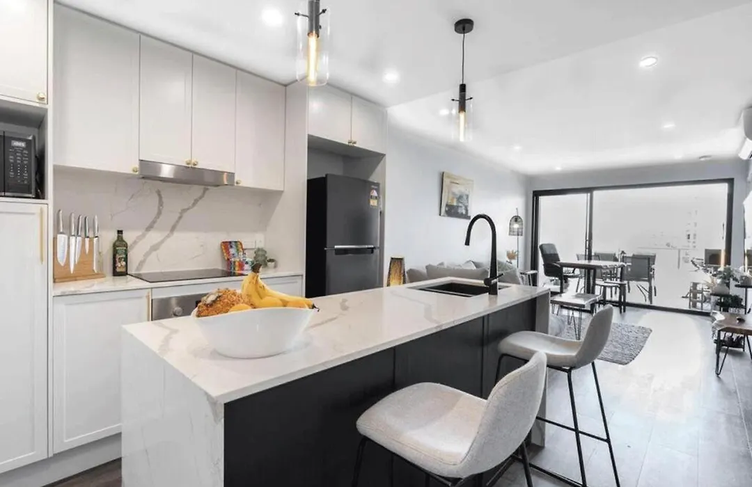 Modern 2-Bed 2-Bath - Walk To Hospital & Westfield Appartement beschikt over een patio en een balkon, biedt airconditioning aan, en kijkt uit over de stad. Gasten die verblijven in dit 2-badkamer appartement kunnen genieten van het gemak van een droger en handdoeken in de badkamer. Je vindt er ook een apart toilet en een douche.
